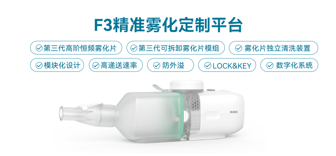 布咳樂F3高遞送霧化定制平臺,在PARI eFlow等國際平臺標(biāo)準(zhǔn)上,全方位實(shí)現(xiàn)國產(chǎn)替代和高端霧化產(chǎn)業(yè)升級,目前已經(jīng)助力吸入抗生素、吸入mRNA-LNP、吸入抗體、吸入外泌體等吸入藥械組合產(chǎn)品的定制開發(fā)和臨床開發(fā)。